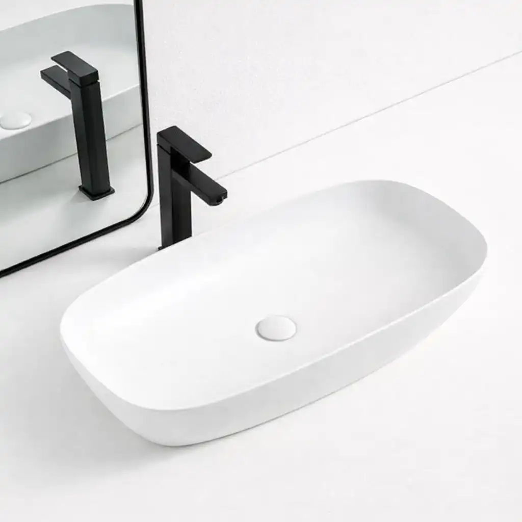 כיור אמבטיה חרס מונח דגם גלי לבן מבריק רוחב 70 | עומק 39